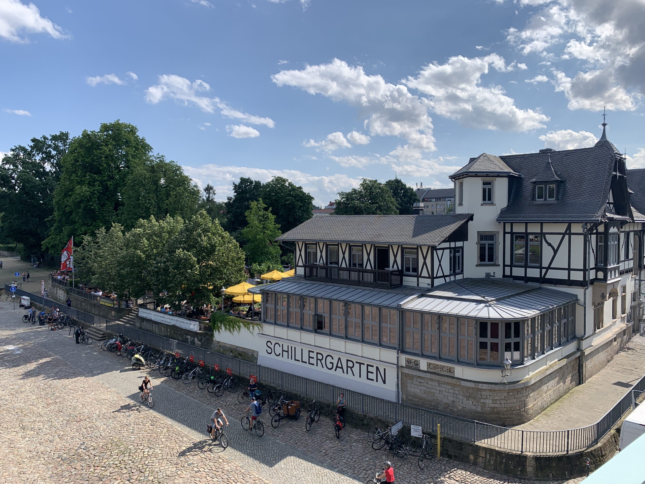 Am Schillerplatz lässt es sich sehr gut einkaufen. Am Donnerstag und Samstag ist direkt vor dem Blauen Wunder ein Wochenmarkt, wo man frisches Obst, Fisch, Fleisch, Wurst und gebackenes aus der Region bekommt. An allen Tagen findet man in den meistens Inhabergeführten Läden auch mal paar Dinge die es nur hier gibt.