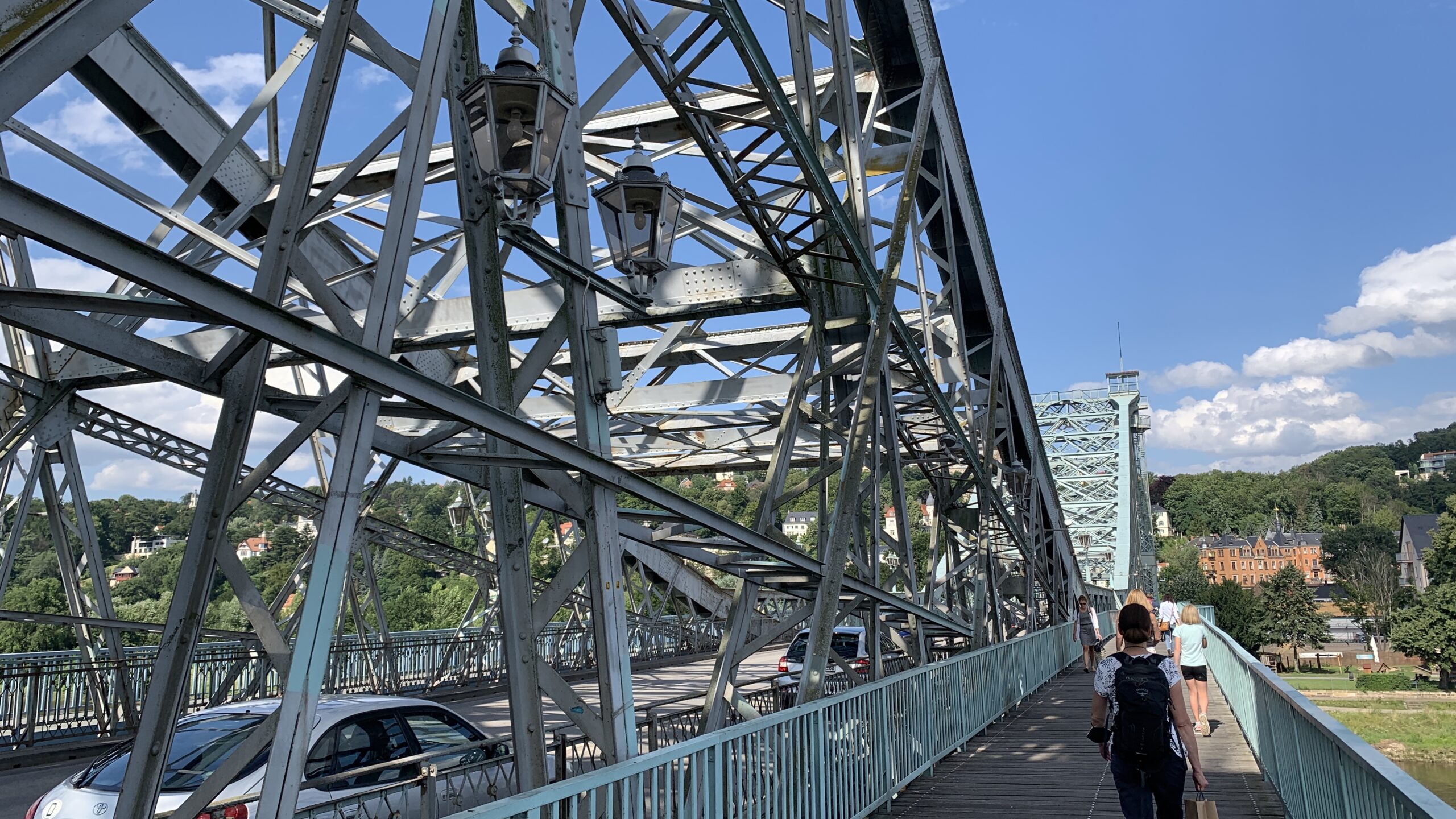 Wenn man durch Dresden in Richtung Laubegast am Elbufer lang fährt passiert man unweigerlich den Schillerplatz mit dem Blauen Wunder. Auswärtige werden sich bestimmt wundern, das es im Navi kein Blaues Wunder gibt. Aber "Blaues Wunder" ist nur der Spitzname der Loschwitzer Brücke. Sie verbindet die Stadtteile Blasewitz am linken und Loschwitz am rechten Ufer miteinander. Die Brücke wurde 1893 als fünfte Elbbrücke im Dresdner Raum fertiggestellt und ist heute ein Wahrzeichen von Dresden.